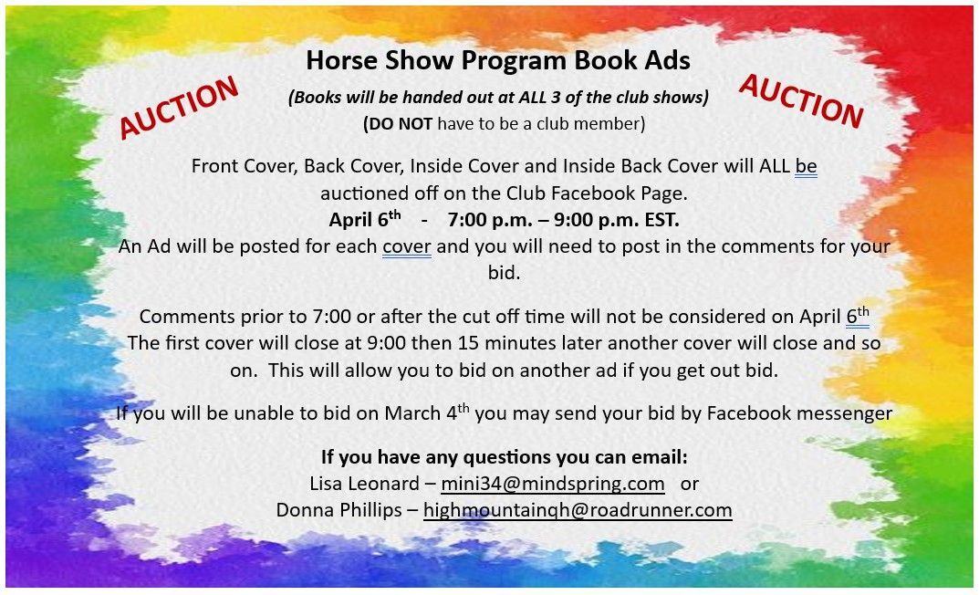 - Advertise in the Horse Show Program Books